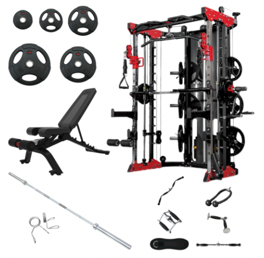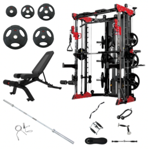 2 צירי משקולות, 60 ק"ג בכל צד, סה"כ 120 ק"ג (אופציה לשדרוג בתשלום תוספת של 30 ק"ג נוספים בכל צד)